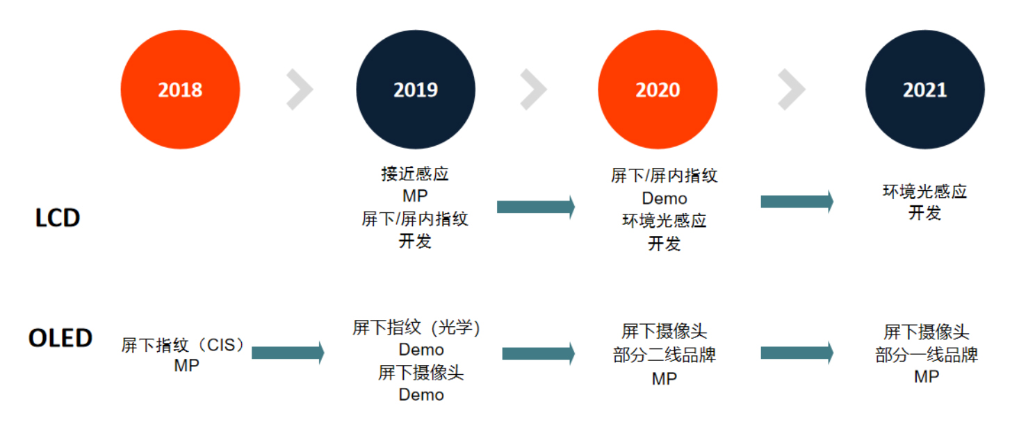 手機(jī)顯示屏針對(duì)功能集成的發(fā)展歷程: