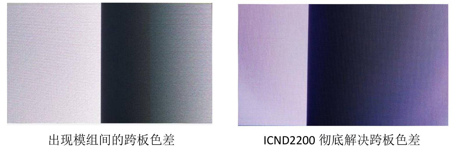 利于行列合一的分區(qū)域控制的框架優(yōu)勢,以及獨(dú)特的高對比度干擾處理技術(shù),ICND2200能徹底解決目前困擾小間距的高對比度干擾造成的跨板色差及高低亮耦合問題。