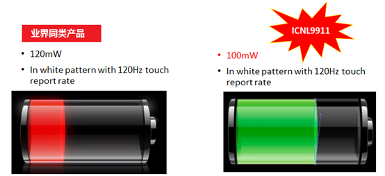 通過自有的低功耗架構(gòu)設(shè)計,ICNL9911具有智能SD/GIP EQ功能,能夠?qū)崿F(xiàn)動態(tài)SD驅(qū)動控制,對各模塊實現(xiàn)精細功耗管理,并在各種功耗模式下內(nèi)置多種靈活的配置可供選擇。在相同工作模式下,與業(yè)界同類產(chǎn)品相比,功耗顯著降低。