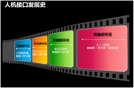 人機接口經(jīng)歷了大型服務(wù)器時代、Windows PC時代、移動互聯(lián)網(wǎng)時代,如今正在向云計算和大數(shù)據(jù)時代邁進(jìn)。在這一時代,伴隨著觸摸屏、顯示屏的技術(shù)創(chuàng)新,更加大膽的創(chuàng)新精神正在被喚醒。由于繁瑣的密碼以及額外的智能設(shè)備難以滿足用戶對于易操作和高安全性的要求,因此,以指紋識別為代表的生物識別技術(shù)大行其道。目前,一些千元左右的手機已經(jīng)配置了指紋識別模塊,未來,隨著物聯(lián)網(wǎng)的逐步推進(jìn),指紋識別將有更廣闊的應(yīng)用空間。