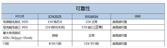 ICN2025實測結(jié)果為0.5V@20mA,友商沒有給出必要的測試條件,測試結(jié)果存疑。