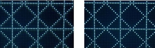 上鬼影是系統(tǒng)在不同的時(shí)間,分別驅(qū)動(dòng)掃描行線,在關(guān)斷上一行線并驅(qū)動(dòng)下一行時(shí),上一行電路中殘留的電量無處釋放,只通過LED發(fā)光的形式釋放產(chǎn)生的暗亮的現(xiàn)象。而毛毛蟲現(xiàn)象則是掃描屏中的LED燈質(zhì)量有漏電或有短路的情況下,燈管被擊穿,使得該燈管所在列的其它燈始終處于高亮顯示狀態(tài)。普通增加電阻的方法只能讓兩種現(xiàn)象此消彼長,無法徹底解決,更因?yàn)辄c(diǎn)間距越小的屏體就擁有單位面積上更多的燈管數(shù)量,成倍放大了對LED顯示屏畫面質(zhì)量的困擾。